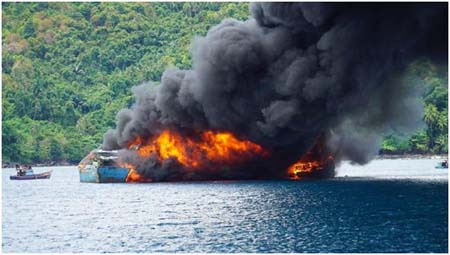 Menurut Erlan Suherlan, dalam tahun 2021. KKP dan Kejaksaan RI telah memusnahkan 26 kapal ikan asing ilegal di Batam, Aceh, Pontianak dan Natuna. Sementara itu, Kepala Kejaksaan Tinggi Kepulauan Riau, Hari Seke10 kapal itu dimusnahkan, dengan cara dibakar dan diberi pemberat, agar tenggelam. Dengan cara demikian tidak menimbulkan dampak negatif terhadap lingkungan perairan sekitarnya, bahkan dapat menjadi rumah ikan,” ujar Hari. (Djohan Chaniago)