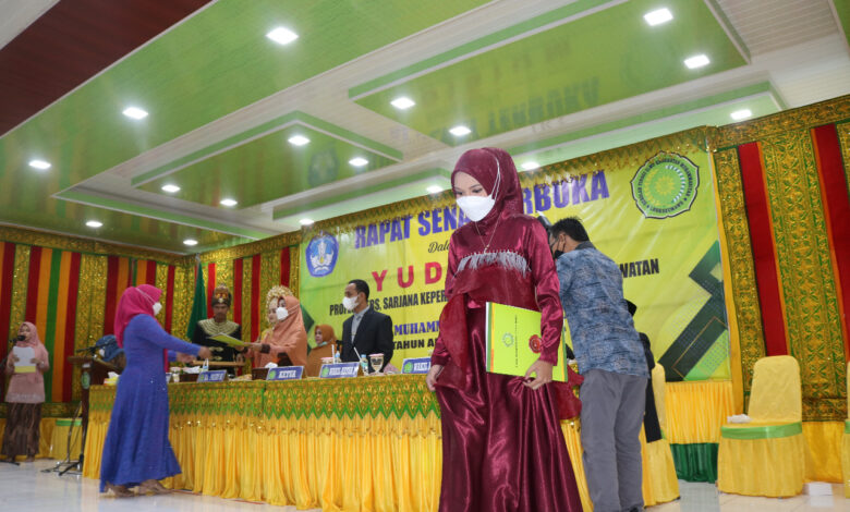 beritanasional.id l Lhokseumawe – Sebanyak 219 mahasiswa Sekolah Tinggi Ilmu Kesehatan (STIKes) Muhammadiyah Lhokseumawe mengikuti yudisium di Hall KH Ahmad Dahlan Lancang Garam, Lhokseumawe, Kamis (11/11/2021).