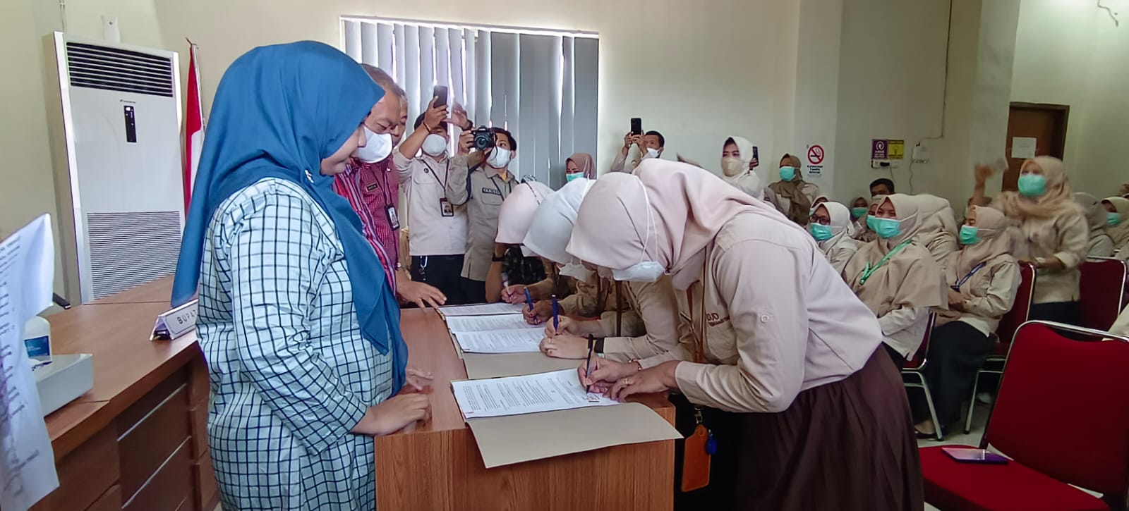 “Mohon kiranya dengan adanya perubahan status kalian bisa memberikan motivasi diri untuk lebih giat bekerja dan memotivasi yang lain,” Terang dr. Anita di ruangan Aula RS, Kamis (6/4/2023).