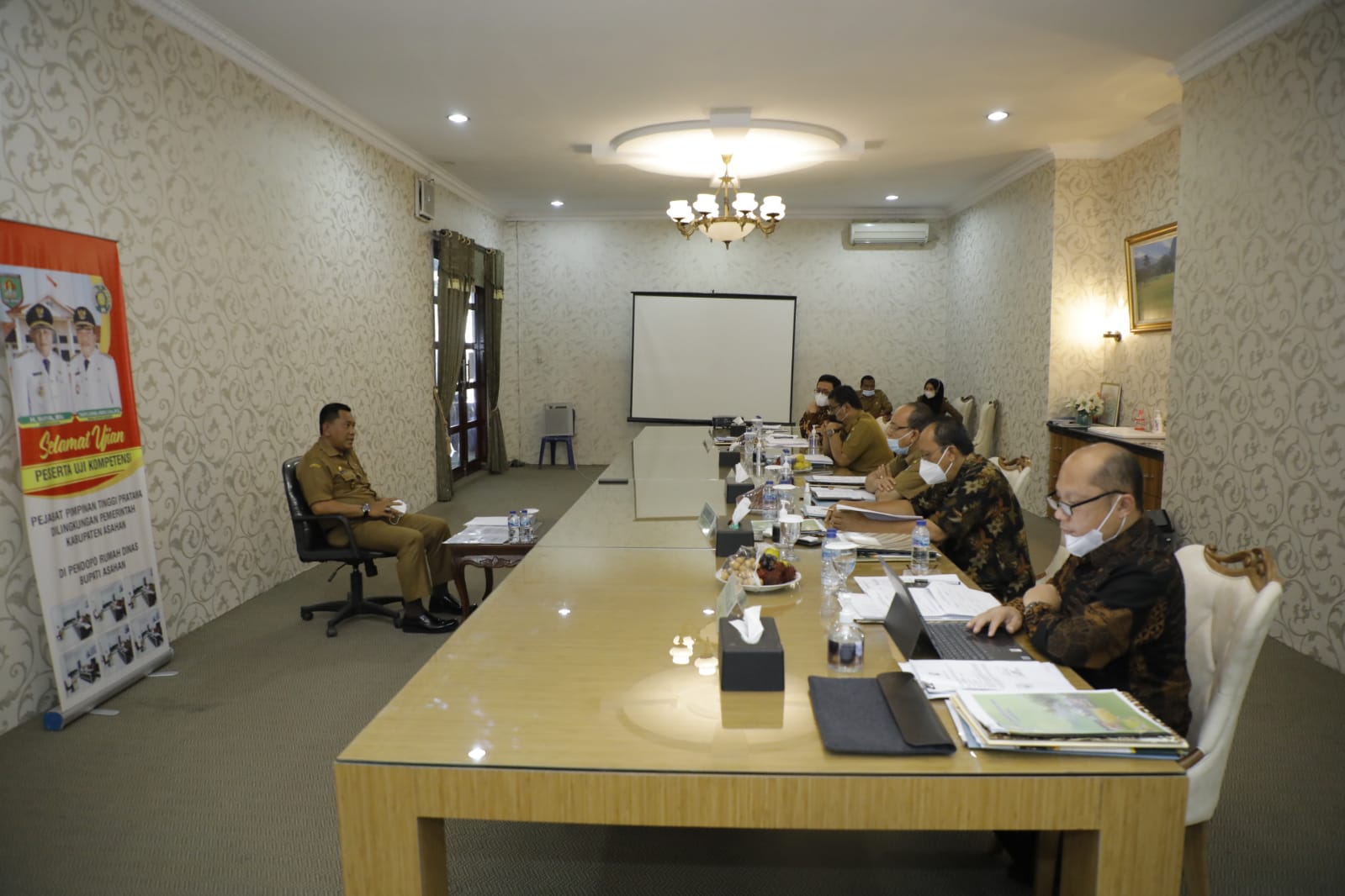 Uji kompetensi yang berlangsung di pendopo rumah dinas Bupati Asahan itu dipimpin oleh Sekretaris Daerah Drs. John Hardi Nasution MSi selaku Ketua Panitia Seleksi dengan penerapan protokol kesehatan yang ketat.