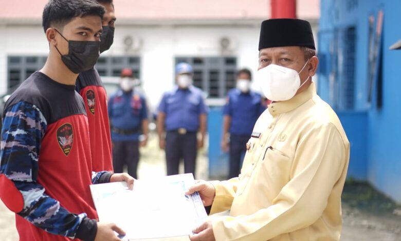 BeritaNasional.ID-TANJUNGBALAI SUMUT Pelaksana (Plt) Tugas Wali Kota Tanjungbalai H Waris Thalib menyerahkan Piagam Penghargaan kepada 17 orang peserta pendidikan dan Latihan (Diklat) Pemadam Dasar di Mako Damkar Jalan Arteri Kelurahan Sirantau Kecamatan Datuk Bandar Kota Tanjungbalai pada Kamis 4/11/21 siang.