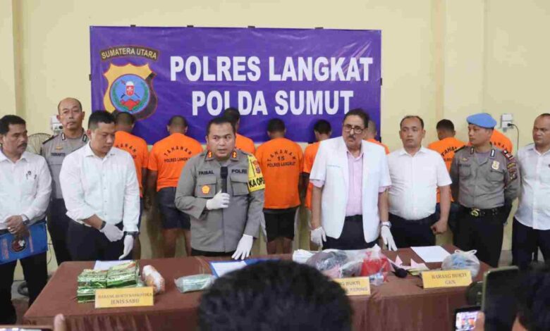 Miliki Narkoba, Polres Langkat Amankan 6 Tersangka dengan 6 Kg Sabu dan 1,3 Kg Ganja
