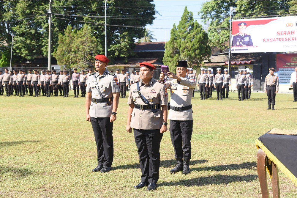 Dalam kesempatan tersebut dilakukan penandatanganan pakta integritas dan penyematan tanda jabatan kepada IPTU Wawan Triono. Suasana penuh kebersamaan dan semangat profesionalisme terlihat dari seluruh peserta upacara yang hadir.