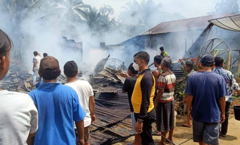 BeritaNasional.ID, Langkat – Musibah kebakaran menimpa 4 keluarga di Dusun II Lau Tepu B, Desa Lau Tepu, Kecamatan Salapian, Kabupaaten Langkat, Sumut, Selasa (26/07/2022) pukul 14:00 WIB. Empat rumah tersebut ludes/habis dan rata dengan tanah.