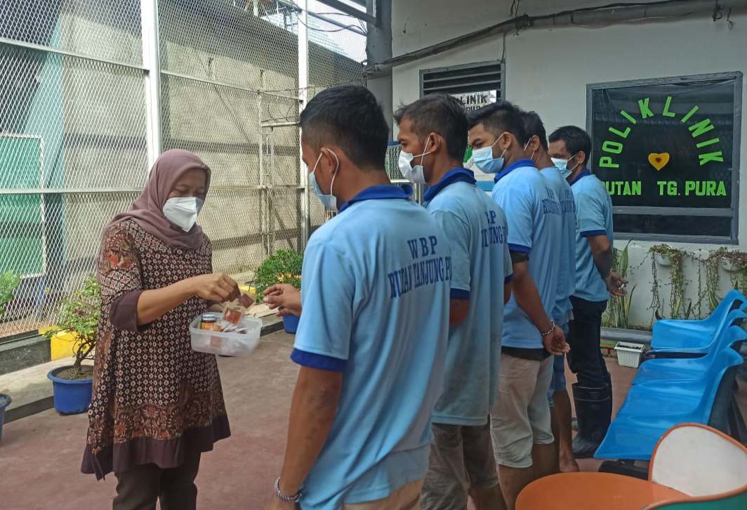 Sebelum pelaksanaan penyemprotan disinfektan, Karutan melalui dokter Rutan terlebih dahulu membagikan multi vitamin kepada warga binaan. Hal ini bertujuan untuk memperkuat daya tahan tubuh warga binaan di tengah kondisi blok hunian yang over crowded (terlalu ramai/over kapasitas).
