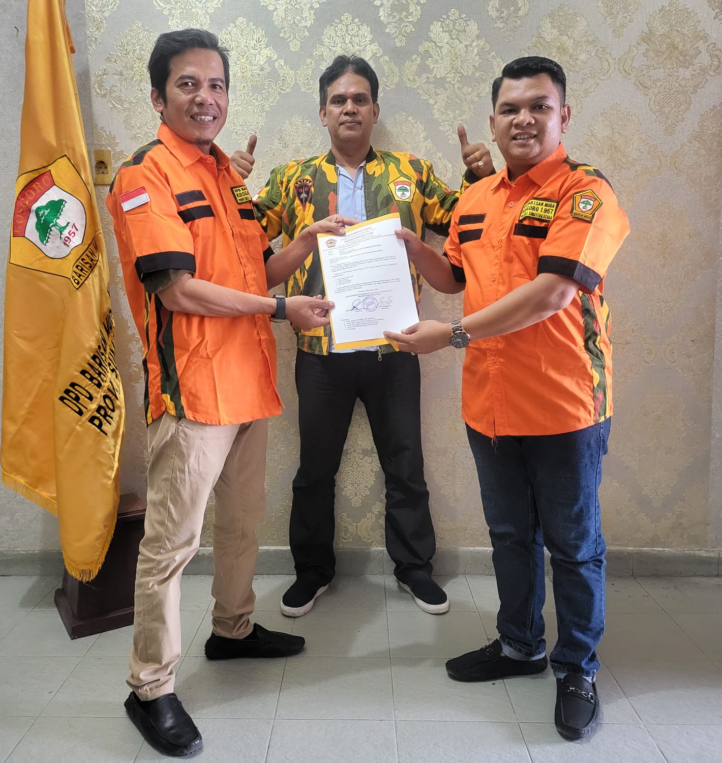 SK mandat ini diserahkan langsung oleh Sekretaris Bung Edy Gusnaidi, S.H di hadapan Ketua DPD BM KOSGORO 1957 Sumut Bung Arifin Said Ritonga, S.H, S.I.K, M.H kepada salah satu penerima mandat yakni Bung Aan Madya Nofriandi, S.H.