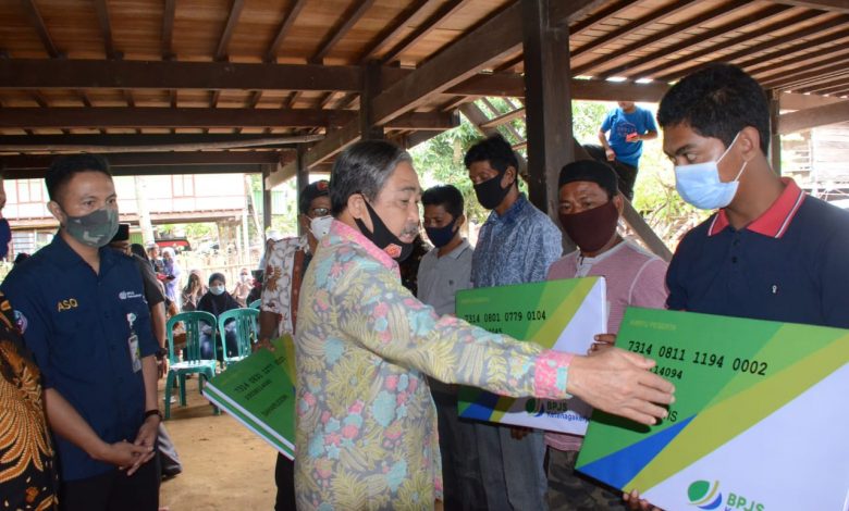 Di kesempatan itu, Dollah Mando juga menyerahkan secara simbolis kartu peserta BPJamsostek kepada 150 orang petani.
