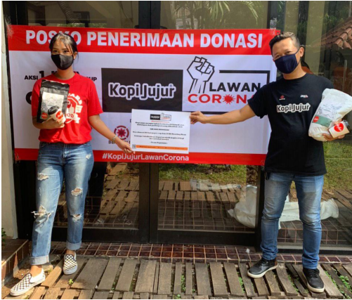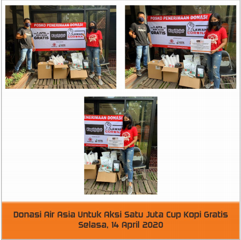 Adel, selaku perwakilan Air Asia Indonesia yang datang menyampaikan bahwa mereka memilih untuk memberikan donasi kepada Aksi Kopi Jujur dikarenakan aksi ini dirasa sangat tepat dengan bentuk donasi yang mereka berikan, dan juga target pendistribusian donasi yang langsung diberikan kepada tenaga medis di rumah sakit rujukan COVID 19, maupun para pengemudi ojek, pengemudi taksi dan para pekerja harian lepas yang sangat merasakan dampak dari wabah COVID 19 ini.