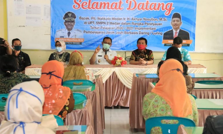 Akhyar yang didampingi Kadis Pendidikan Kota Medan Adlan, Kepala BPBD Kota Medan Arjuna Sembiring, dan Kepala Sekolah SMP Negeri 2 Medan Marita Yetti beserta jajaran melihat secara langsung proses belajar mengajar melalui Daring. Bahkan, Akhyar juga menyapa langsung dan memberikan motivasi kepada siswa-siswi SMP Negeri 2 Medan agar semakin semangat dalam belajar meskipun tidak bertatap muka secara langsung hanya dari rumah melalui Daring.
