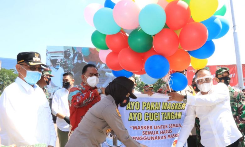 BeritaNasional.ID Medan – Pelaksana Tugas (Plt) Wali Kota Medan Ir H Akhyar Nasution MSi menghadiri acara Pembagian Masker Serentak, Kampanye Jaga Jarak, Dan Hindari Kerumunan Dalam Rangka Operasi Yustisi Penggunaan Masker Dan Pilkada 2020 Yang Aman, Damai, Dan Sehat di Lapangan Merdeka Medan Jalan Pulau Pinang Kelurahan Kesawan Kecamatan Medan Barat, Kamis (10/9/2020) pagi. Acara ini bertujuan untuk  mengingatkan serta menanamkan kesadaran masyarakat akan pentingnya menjalankan protokol kesehatan untuk mencegah penularan Corona Virus Disease 2019 di Sumatera Utara khususnya Kota Medan.