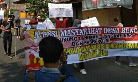 Kini puluhan warga dan peserta calon perangkat yang merasa tercurangi menggelar aksi penolakan. Aksi itu dengan membentangkan spanduk di depan Kantor Balai Desa Kuncir. Sebagai wujud matinya keadilan di Desa Kuncir. Sebagai wujud penolakan warga kuncir bersatu.