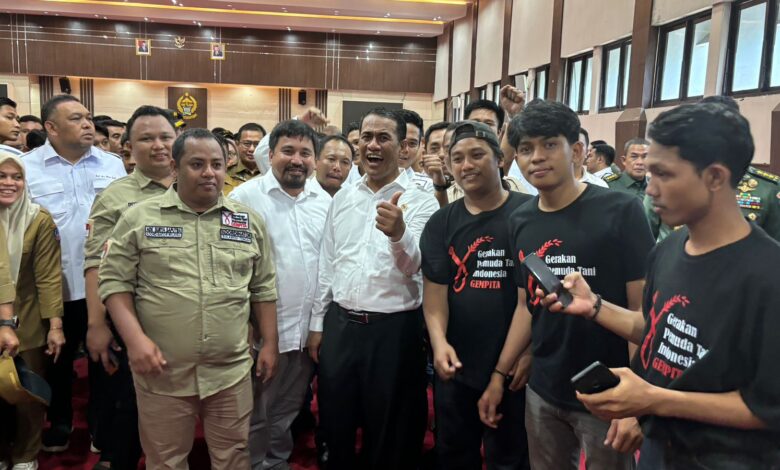 BeritaNasional.ID.MAKASSAR SULSEL —Koordinator Nasional Gempita Ibrahim Asnawi bersama koordinator Sulawesi Barat,, Irfan Fahri Putra, Gempita wilayah Sulawesi Selatan, Sulawesi Tenggara, Sulawesi Tengah, Gorontalo dan Sulawesi Utara menghadiri kegiatan kunjungan kerja menteri pertanian di Sulawesi Selatan untuk menyalurkan bantuan pertanian kepada petani yang lahannya terkena dampak bencana alam di 7 kabupaten tersebut. Makassar , 27 Mei