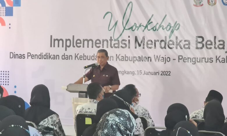 Hal tersebut disampaikan Bupati Wajo, Amran Mahmud saat membuka sekaligus menyampaikan materi pada Workshop Implementasi Kebijakan Merdeka Belajar yang digelar Dinas Pendidikan dan Kebudayaan kabupaten Wajo bekerja sama dengan Persatuan Guru Republik Indonesia (PGRI) kabupaten Wajo di Gedung PGRI, Sabtu (15/1/2022).