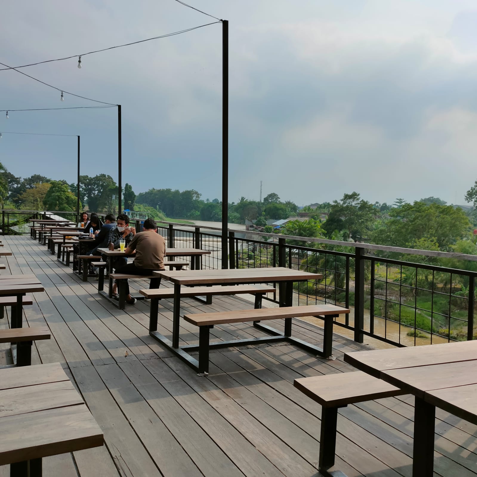 Bangunan Cafe JITJIT tersebut tidak jauh dari bendungan PDAM Tirtanadi Sunggal, jika kita berdiri di bangunan seperi dermaga itu maka kelihatan air mengalir tertahan seperti sebuah bendungan.