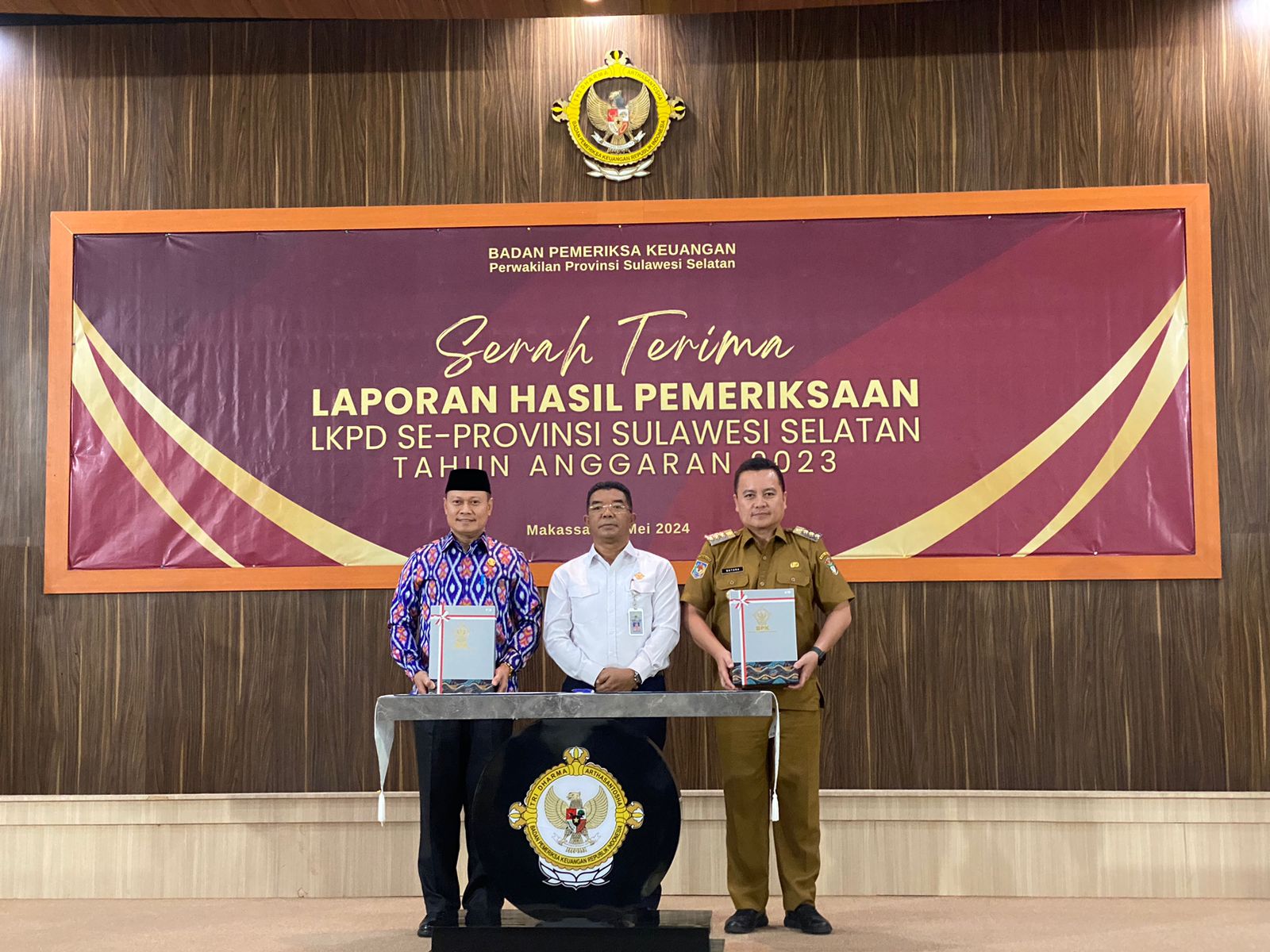 Hal ini diketahui saat penyerahan Laporan Hasil Pemeriksaan (LHP) atas Laporan Keuangan Pemerintah Daerah (LKPD) Kabupaten Wajo tahun 2023 dari Badan Pemeriksa Keuangan (BPK) RI Perwakilan Sulsel menyerahkan LHP atas Laporan Keuangan Pemerintah Daerah (LKPD) Tahun Anggaran 2023 kepada Pemkab Wajo.