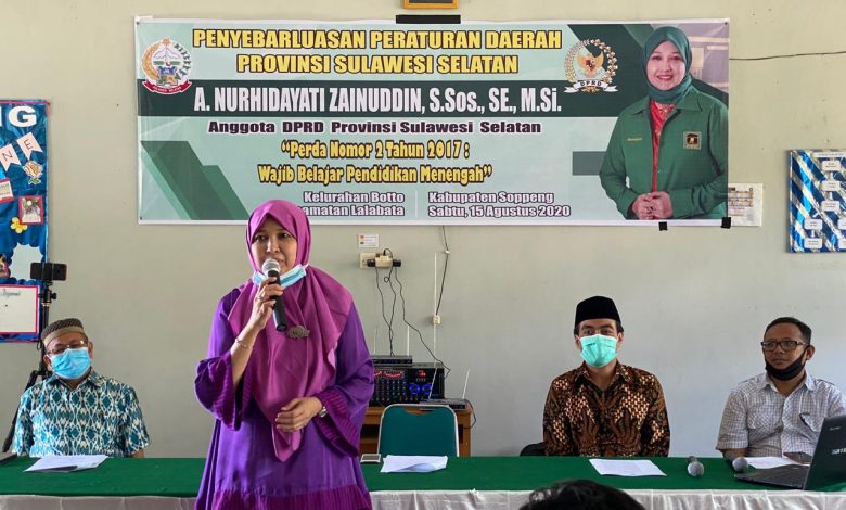 Hal tersebut diungkapkan Andi Etti sapaannya saat menggelar penyebarluasan Peraturan Daerah (Perda) Provinsi Sulawesi Selatan Nomor 2 Tahun 2017 tentang Wajib Belajar Pendidikan Menengah di MAN 1 Watansoppeng, Jl Kayangan, Sabtu (15/8/2020).