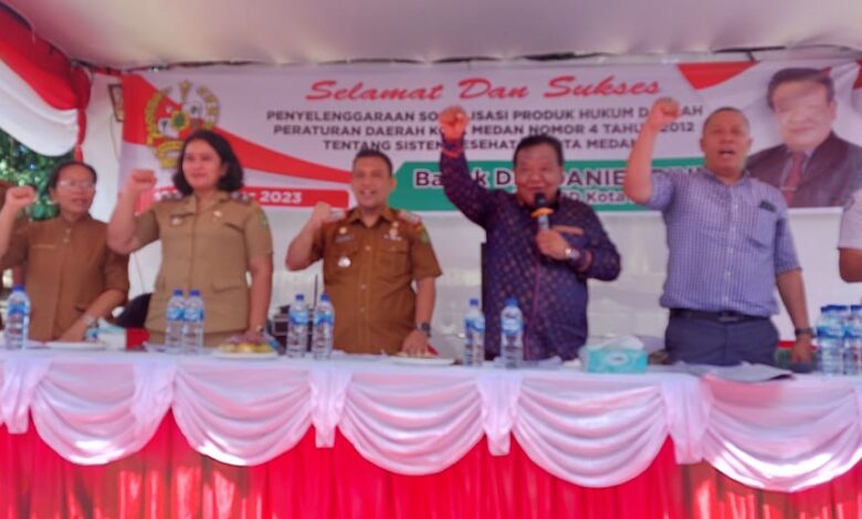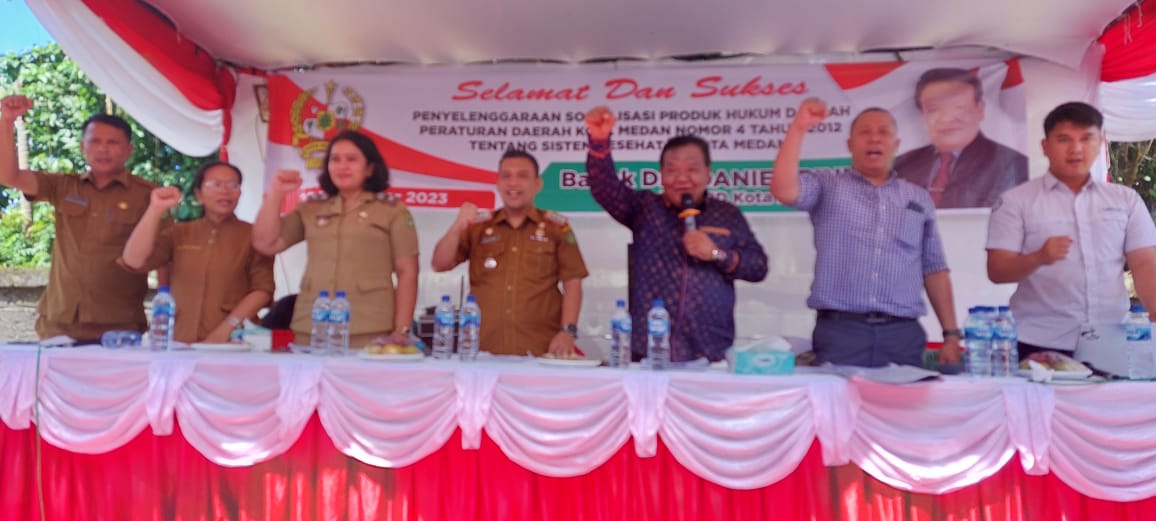BeritaNasional.ID, MEDAN SUMUT – Anggota DPRD Kota Medan Fraksi PDI – Perjuangan Drs. Daniel Pinem melakukan Sosialisasi Produk Hukum Daerah Kota Medan No. 4 Tahun 2012 Tentang Sistem Kesehatan Kota Medan di Jalan Mekar Jaya, Kelurahan Sempakata Kec. Medan Selayang, Senin (27/11/2023).