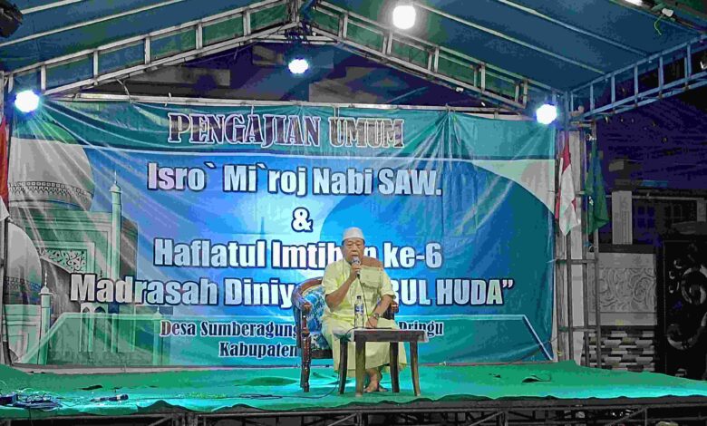 BeritaNasional.ID, Probolinggo, Jawa Timur – Anggota Dewan Perwakilan Rakyat Daerah (DPRD) Provinsi Jawa Timur, H.M.Hasan Irsyad hadiri kegiatan Isra Miraj Nabi Muhammad SAW dan Haflatul Imtihan ke-6 Madrasah Diniyah Nurul Huda di Desa Sumber Agung Kecamatan Dringu Kabupaten Probolinggo. Sabtu (18/3/2023)