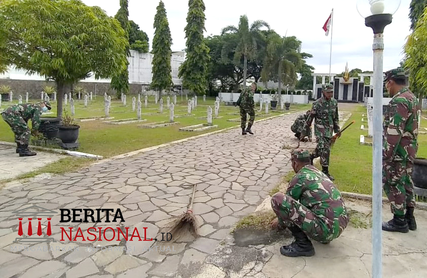 Anggota Kodim 0823 Situbondo Karya Bakti Bersihkan Taman Makam Pahlawan