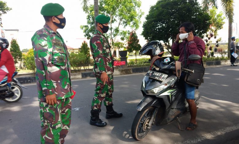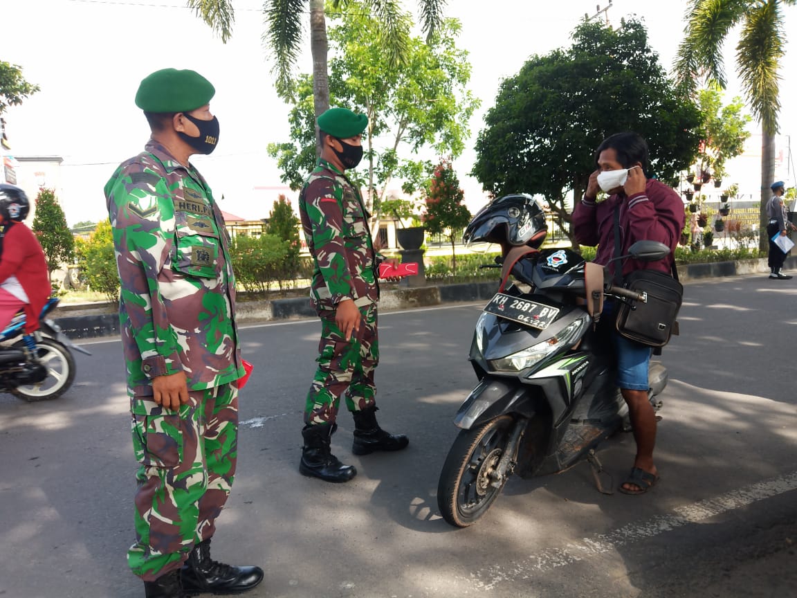 Anggota Kodim 1011/Klk Melaksanakan Operasi Yustisi, Guna Mengurangi Penyebaran Covid-19