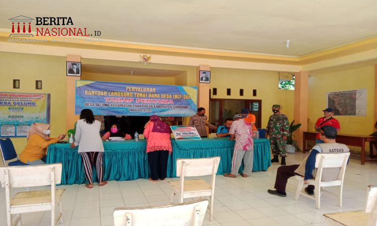 Kemensos RI menyalurkan BST kepada 100 orang warga terdampak Covid-19 melalui PT. Pos Indonesia. Penyaluran BST ini di saksikan oleh Kades Desa Gelung, Babinsa Desa Gelung Sertu Masarip, Bhabinkamtibmas Desa Gelung dan perangkat Desa Gelung.