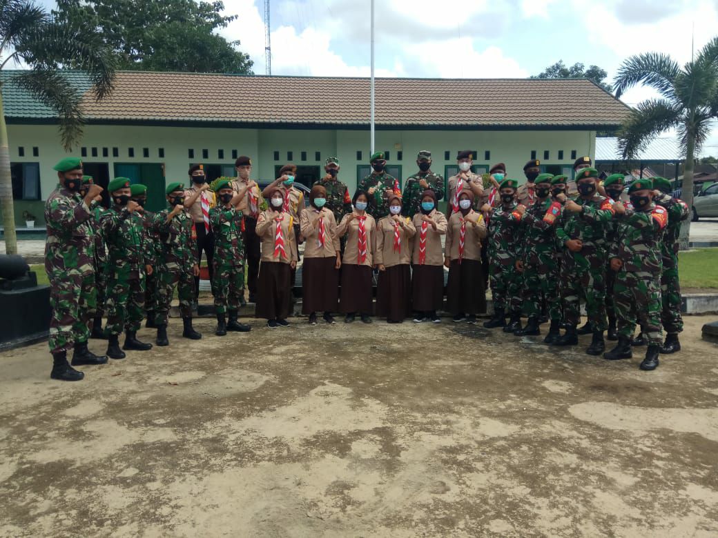 Anggota Pramuka Saka Wira Kartika Sambut kedatangan Dandim ke Koramil 06 Sukamara