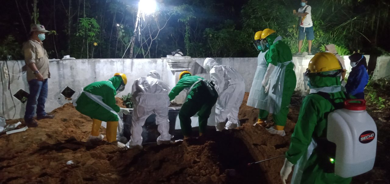 Ditengah pandemi COVID-19, proses pemakaman jenazah yang terkonfirmasi virus Corona wajib menggunakan prosedur pemulasaran sesuai protokol COVID-19. Termasuk personel yang terlibat, baik prajurit TNI dan tenaga medis, wajib menggunakan alat pelindung diri selama proses pemakaman berlangsung.