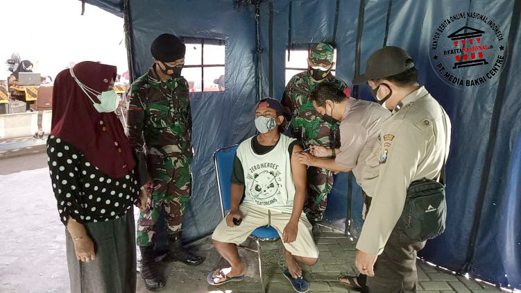 BeritaNasional.ID – SITUBONDO JAWA TIMUR – Anggota Koramil 07 Asembagus, Polsek Asembagus dan BKO Yon kav 3/AC melaksanakan pengamanan vaksinasi Covid-19 yang berlangsung di Pusat Kesehatan Masyarakat (PKM) Jangkar, Kabupaten Situbondo. Dalam pelaksanaan vaksinasi tersebut, animo masyarakat Jangkar sangat tinggi untuk mendapat suntikan vaksin Covid-19, Sabtu (31/7/2021).