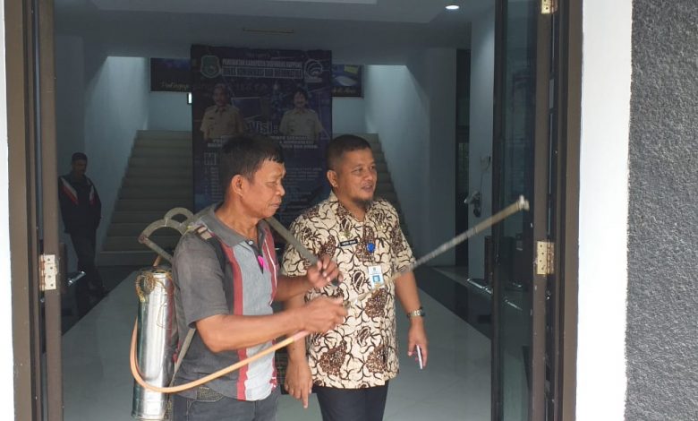 Terpantau, penyemprotan dilakukan di kantor-kantor Pemerintah, Bank, Rumah Sakit, Puskesmas, Sekolah dan fasilitas umum lainnya.