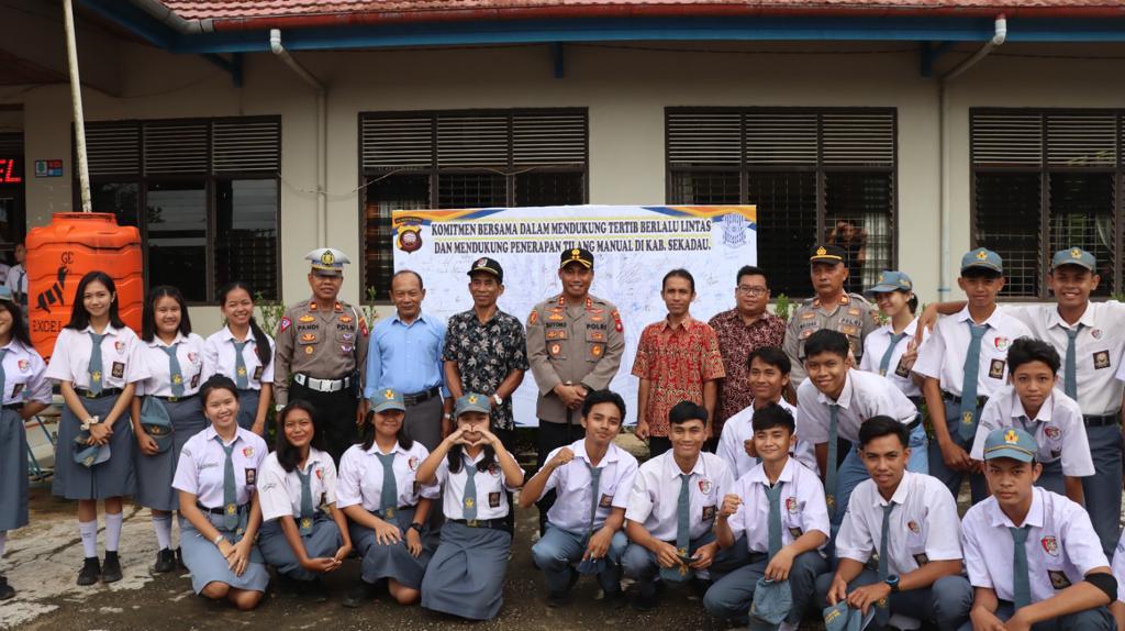 BeritaNasional.ID, SEKADAU KALBAR – Dewan guru dan pelajar SMA Karya Sekadau menandatangani deklarasi tertib berlalulintas sebagai bentuk dukungan penerapan tilang manual di kabupaten Sekadau.