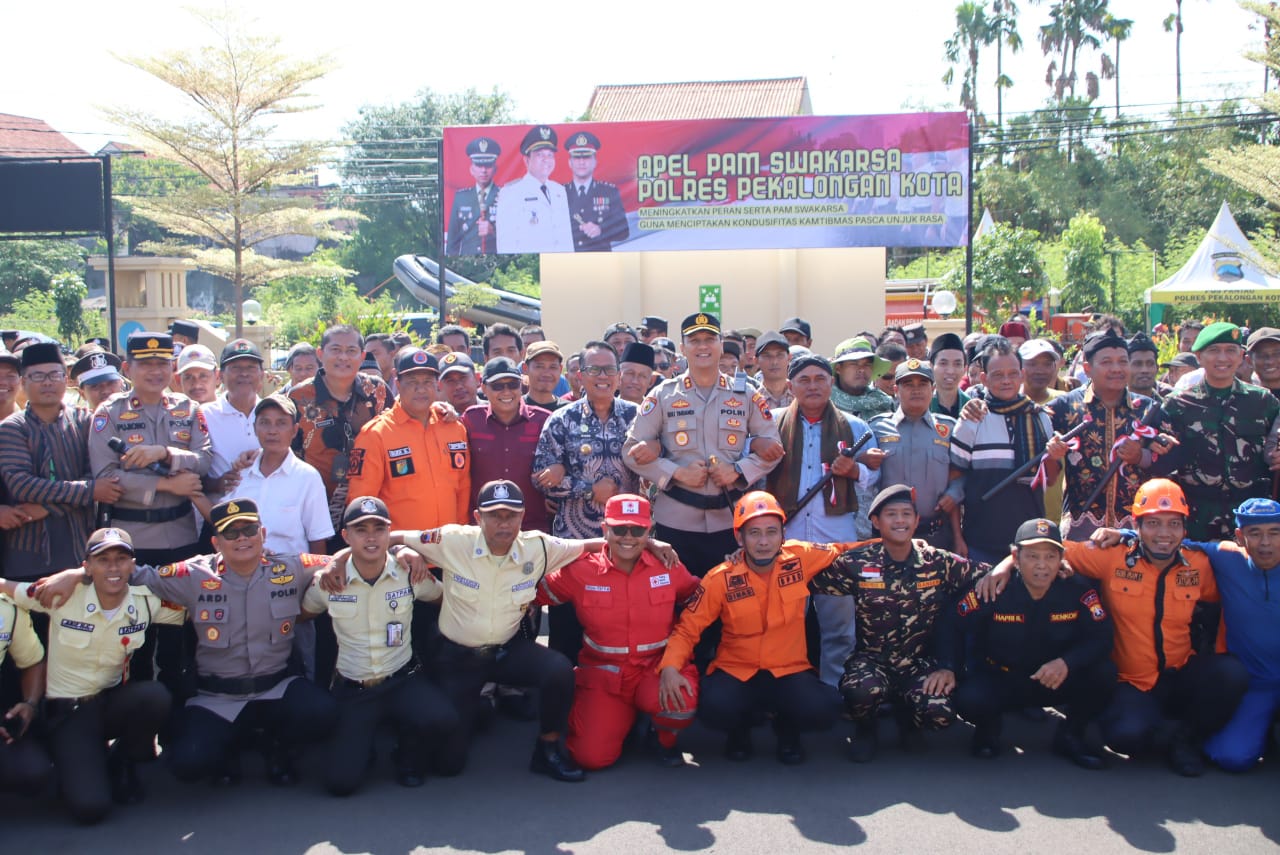 Berita Nasional. ID | Kota Pekalongan – Polres Pekalongan Kota menggelar Apel Pam Swakarsa tingkat Kota Pekalongan di halaman Mapolres Jalan P. Diponegoro No. 19, Kamis (2/10/2025). Kegiatan ini digelar untuk memperkuat sinergi antara aparat keamanan dan masyarakat dalam menciptakan situasi kamtibmas yang aman dan kondusif di wilayah setempat.