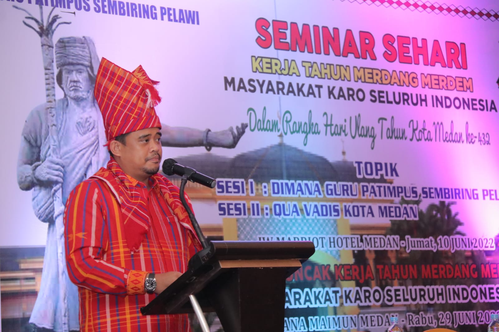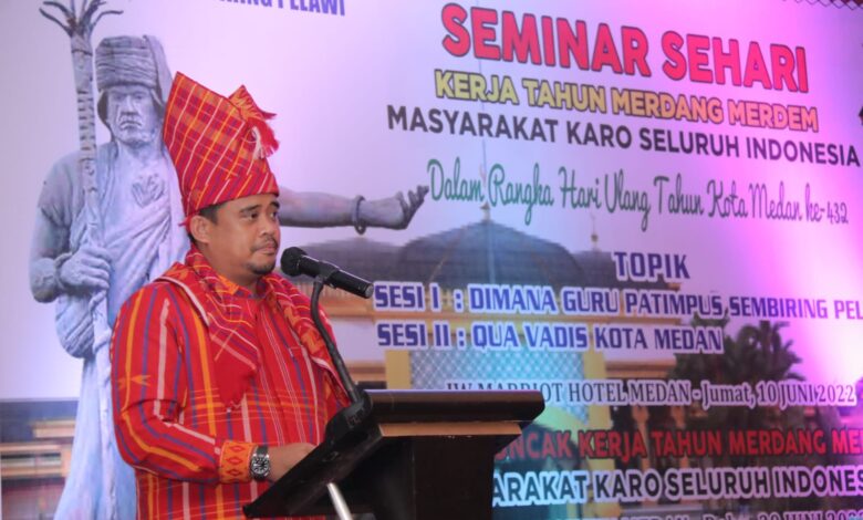Demikian disampaikan Bobby Nasution saat membuka Seminar Sehari Kerja Tahun Merdang Merdem Masyarakat Karo Seluruh Indonesia dalam rangka HUT Kota Medan ke-432 di Hotel JW Marriot Medan Jalan Putri Hijau, Jumat (10/6/2022).
