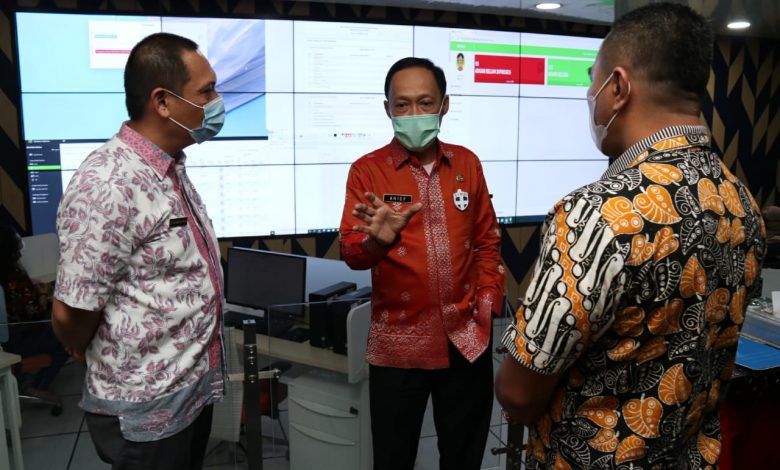 BeritaNasional.ID Medan – Pjs Wali Kota Medan Ir Arief Sudarto Trinugroho MT melakukan pengecekan data jumlah kasus terbaru Corona Virus Disease 2019 (Covid-19) Kota Medan di Command Center Balai Kota Medan, Jalan Kapten Maulana Lubis, Kamis (1/10). Hal ini dilakukan guna mengetahui data kasus pasien baik yang masuk dalam kategori orang dalam pemantauan (ODP), orang tanpa gejala (OTG), pasien dalam pengawasan (PDP) maupun pelaku perjalanan (PP).