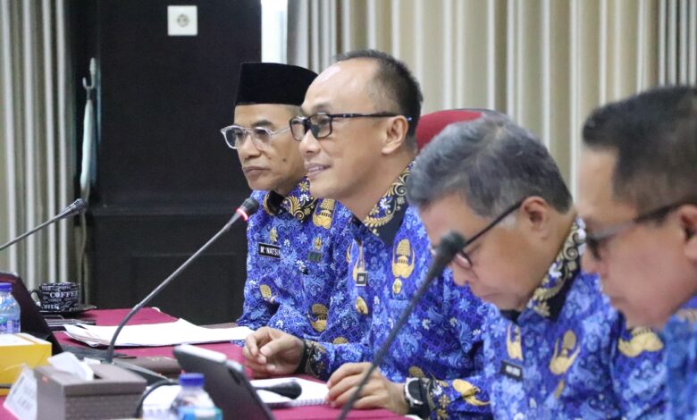 PJ Gubernur Sulbar, Prof Zudan Arif Fakrulloh didampingi Sekprov Sulbar Muhammad Idris dan sejumlah OPD. Tim Evaluator Kinerja Pj Gubernur Sulbar dipimpin oleh Irjen Kemendagri Tomsi Tohir.