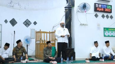 Bupati Labura Hendriyanto Sitorus saat memberikan sambutan dalam kunjungan Safari Ramadhan di Mesjid Nurul Iman, Kecamatan Aek Kuo. (Foto : Diskominfo Labura) Bupati Hendriyanto Safari Ramadhan di Mesjid Nurul Iman Aek Kuo