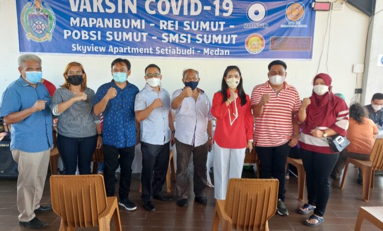 BeritaNasional.ID, Medan – Ratusan masyarakat Kota Medan mengikuti Vaksin Covid-19 yang dilaksanakan Pemerintah Provinsi Sumatera Utara (Pemprovsu) melalui MAPANBUMI, DPD REI, POBSI SUMUT, SMSI dan JMSI Sumut bertempat di Skyview Setia Budi Jln. Abdul Hakim Medan, Selasa (20/4/2021).