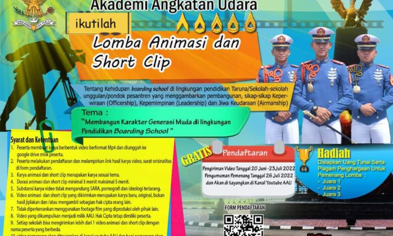 10. video pemenang akan ditayangkan di kanal youtube AAU dan bagi pemenang akan diundang pada Upacara Hari Jadi Akademi Angkatan Udara ke 57 tanggal 26 Juli 2022.