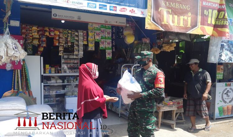 BeritaNasional.ID – SITUBONDO – Serda Agus .S Babinsa Desa Kedungdowo Koramil 0823/10 Arjasa Desa Kedungdowo melaksanakan pendampingan penyaluran Bantuan Sosial Pangan (BSP) di wilayah Desa Kedungdowo yang disalurkan melalui E – warung Toko milik Ibu Intan, Senin (5/4/2021).