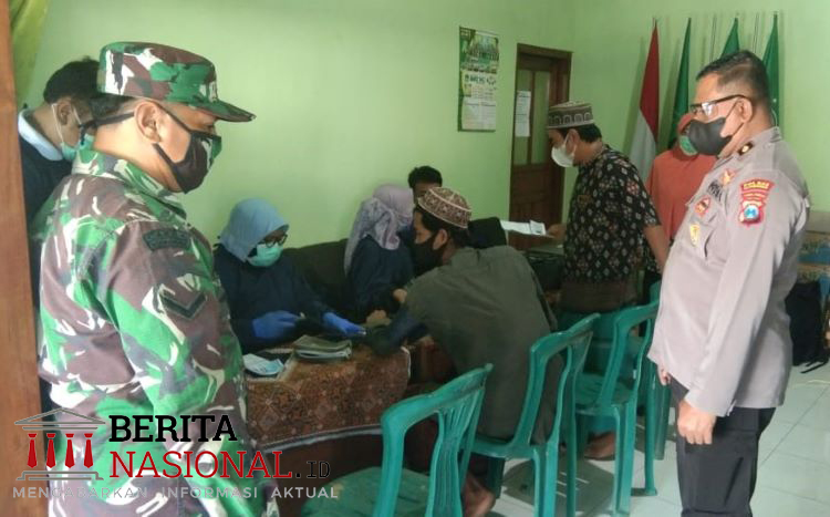 SITUBONDO – Anggota Koramil 0823/08 Banyuputih Babinsa Desa Sumberejo Serda H. Alif melakukan pengamanan vaksinasi Covid-19 yang dilaksanakan Pengurus Ranting NU Sumberejo bekerjasama dengan Urkes Polres Situbondo, Polsek Banyuputih dan Puskesmas Banyuputih, Sabtu (4/9/2021).