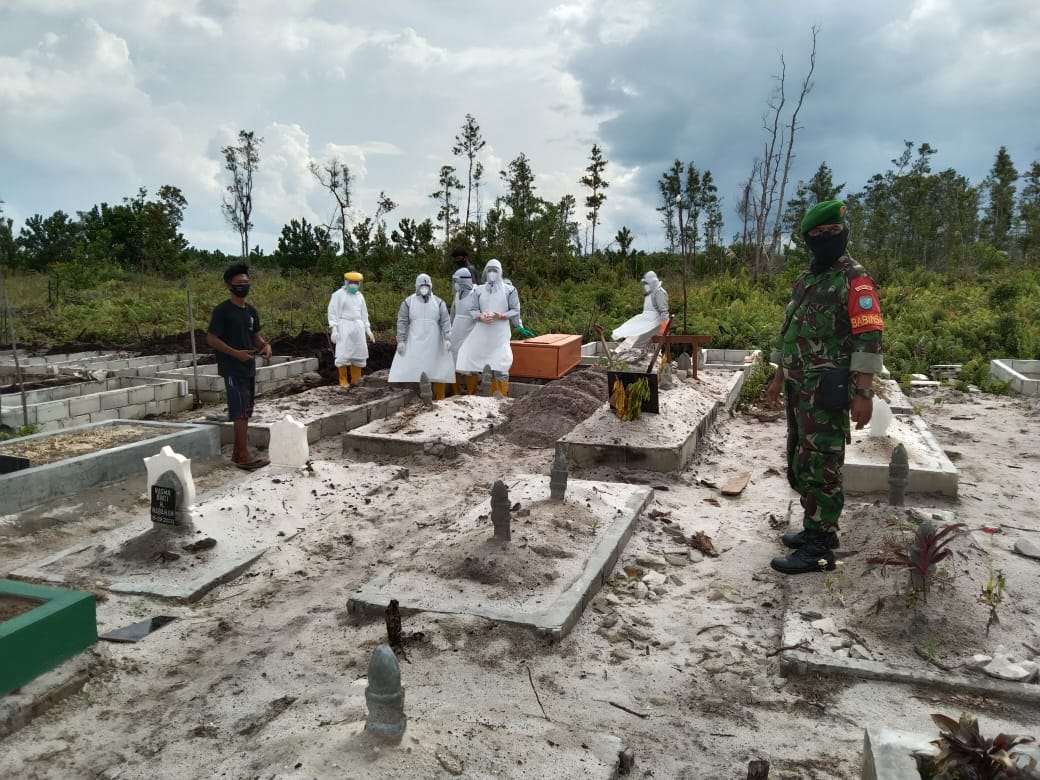 Babinsa Koramil Pahandut Kawal Proses Pemakaman Pasien Covid-19
