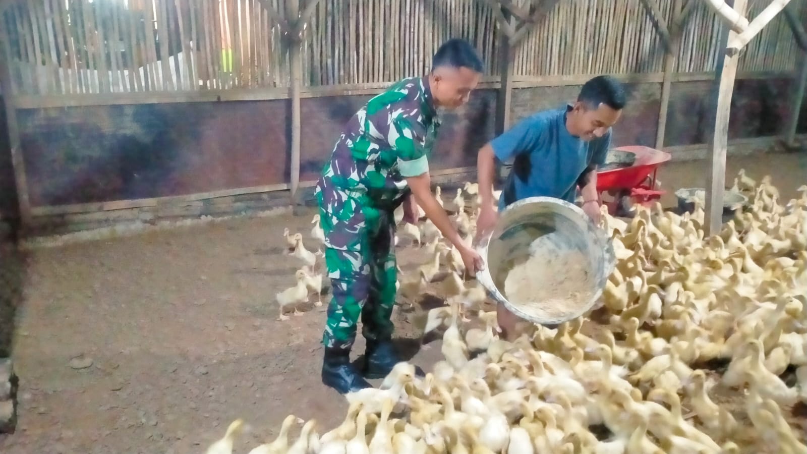 Babinsa Maron Giat Komsos Dengan Peternak Bebek Guna Memotivasi UMKM Warga