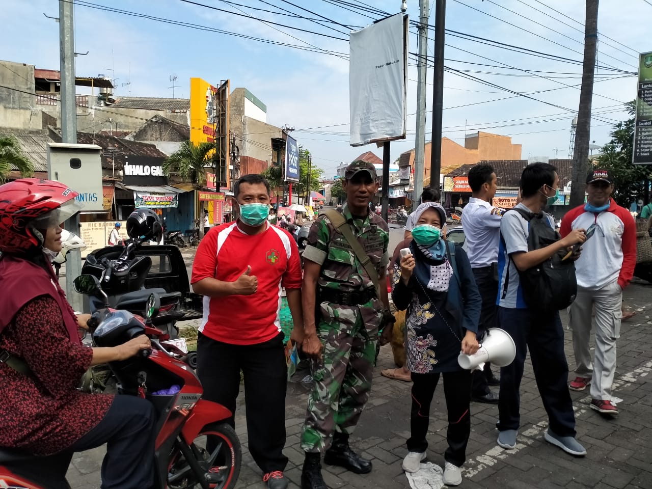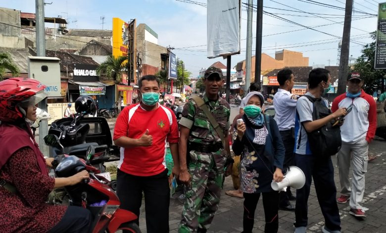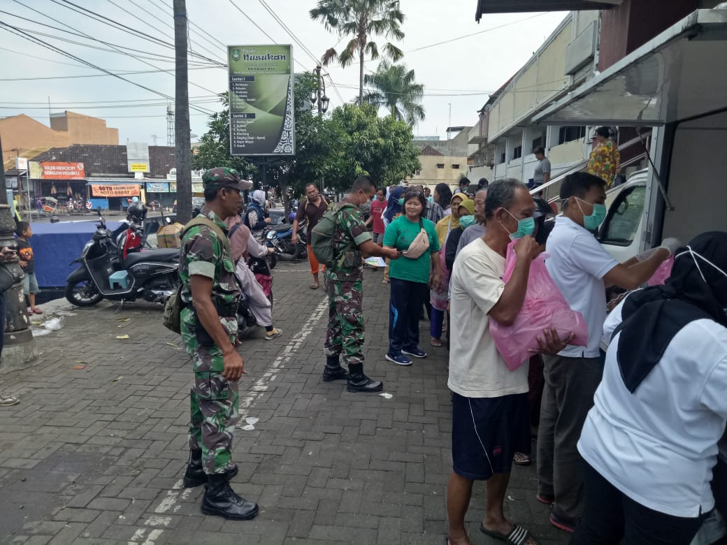 BeritaNasional.ID, Surakarta – Babinsa Kelurahan Nusukan Koramil 02/ Banjarsari Kodim 0735/ Surakarta Serka M. Nasirin dan Sertu Danang M. melaksanakan pendampingan kegiatan Pasar Murah dan Sosialisasi Virus Corona (Covid-19) bertempat di Halaman Pasar Nusukan Jl. Peir Tandean Kel. Nusukan Kec. Banjarsari Surakarta, (20/3).