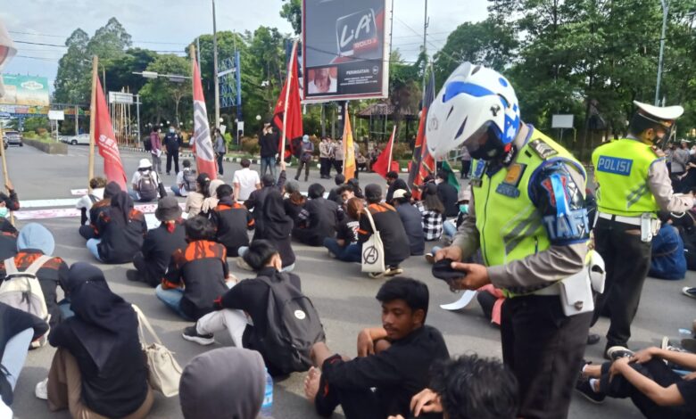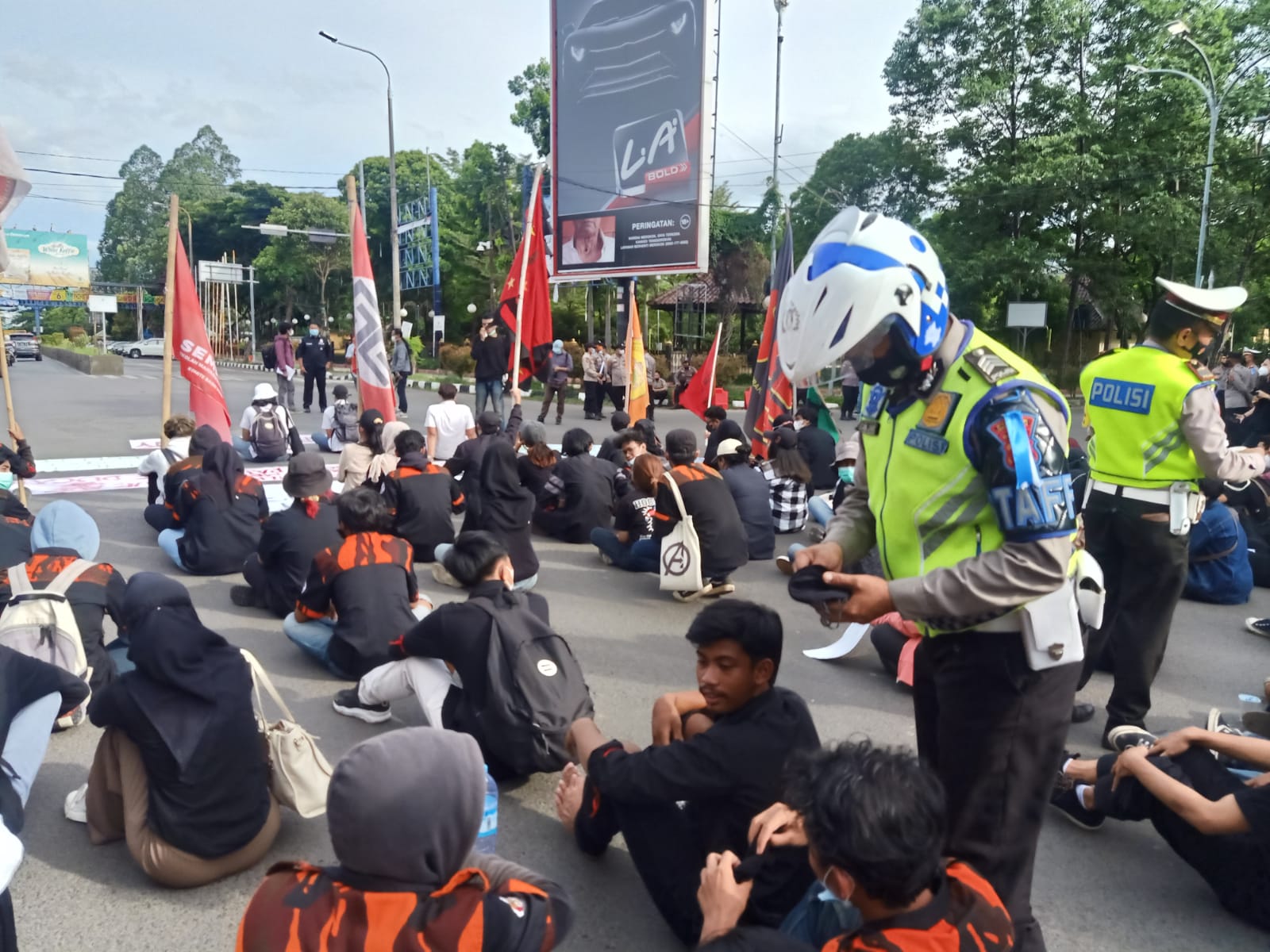 Bagikan Masker Saat Unjuk Rasa Mahasiswa, Polda Banten Harap Massa Aksi Taati Prokes