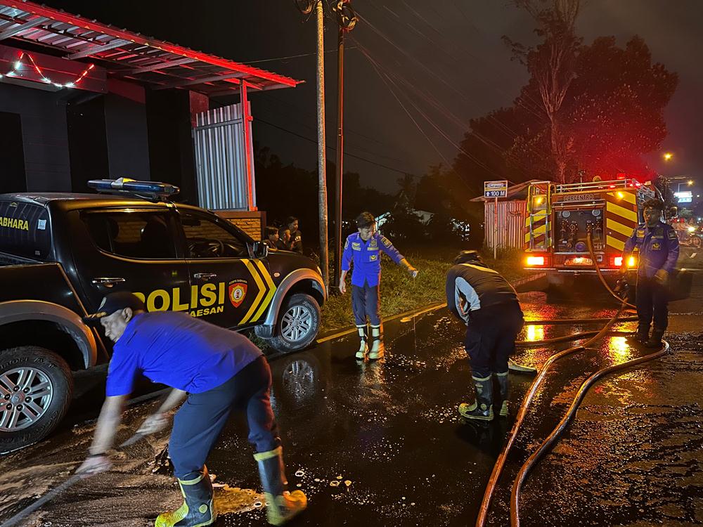 Bahayakan Pengendara, Tumpahan Solar di Maesan Dibersihkan Petugas Damkar
