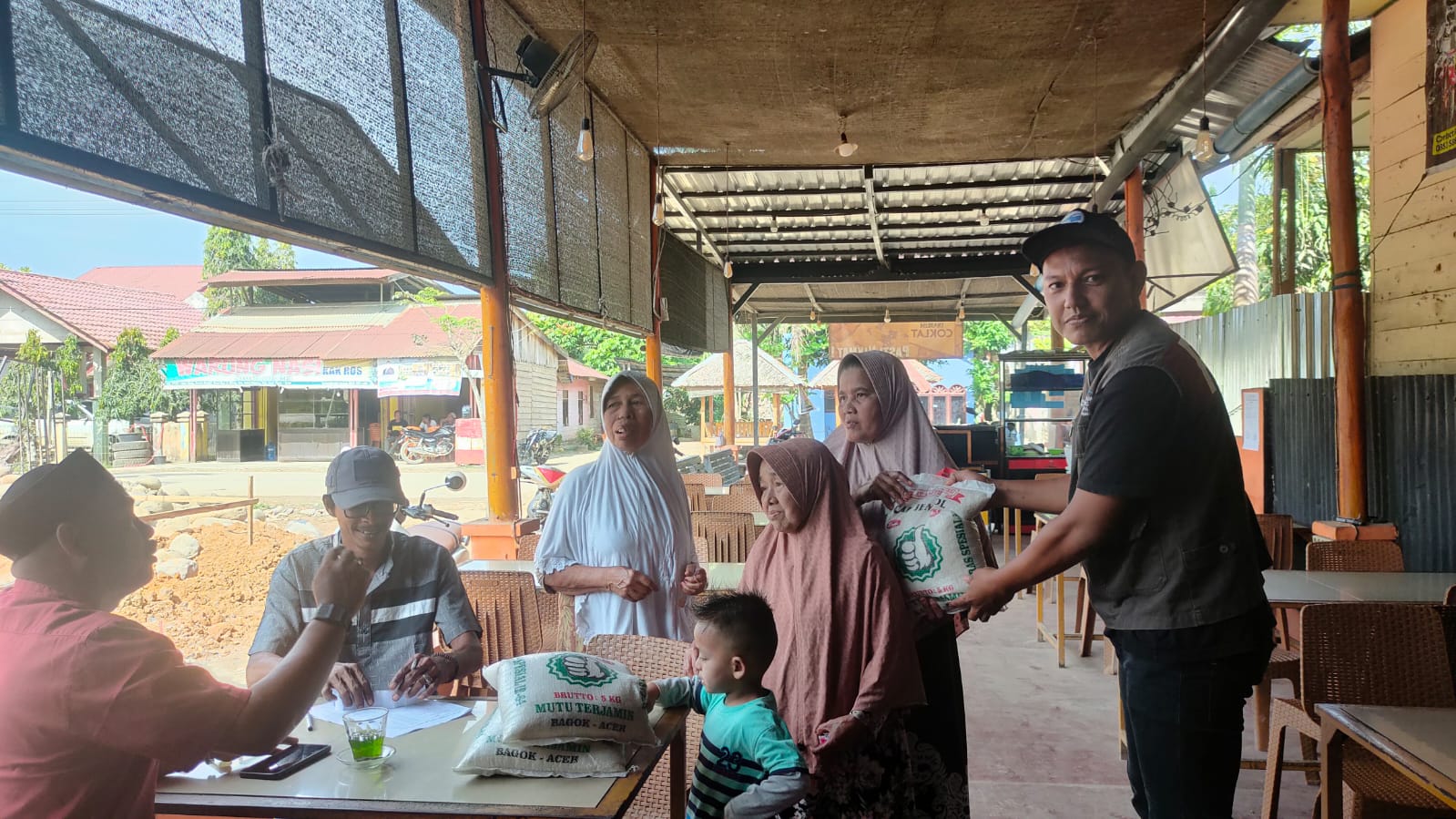 Salah satu panitia, Al-ehdalusi yang juga ketua TPG Alue Ie Mirah mengatakan, beras tersebut berasal dari para donatur yang suka rela bersedekah beras setiap bulannya untuk dibagikan kepada para Janda lanjut usia dan warga sakit menahun.