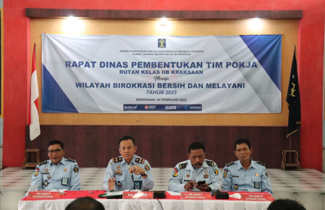 Hari ini (Sabtu, 04 Februari 2023) bertempat di Ruang Aula Pengayoman Rutan Kelas IIB Kraksaan Kanwil Kemenkumham Jawa Timur berlangsung rapat kerja Pembentukan Tim Kerja Zona Integritas Menuju Wilayah Bebas dari Korupsi (WBK) dan Wilayah Birokrasi Bersih Melayani (WBBM).