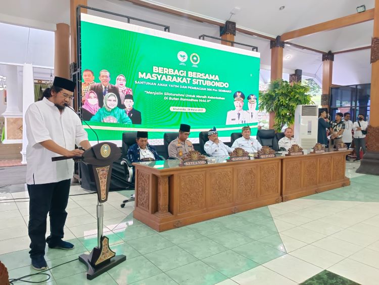 Bakti sosial yang bertajuk “Berbagi Dengan Masyarakat Kabupaten Situbondo Jalin Silaturrahmi Meraih Keberkahan Bulan Ramadhan 1444 H” yang berlangsung di Pandapa Aryo Situbondo ini, dihadiri Bupati Situbondo Karna Suswandi, Sekda Situbondo, Kapolres Situbondo AKBP Dwi Sumrahadi Rakhmanto, Kepala Badan Pertanahan Nasional Situbondo, Pembina Notaris Muslim Indonesia DR. Isy Kariman Syakir, Ketua Notaris Muslim Indonesia Korwil Jawa Timur Abd Razak, dan Ketua Ikatan Notaris Indonesia Lukman Hakim Gusti dan tamu undangan lainnya berlangsung khidmat.
