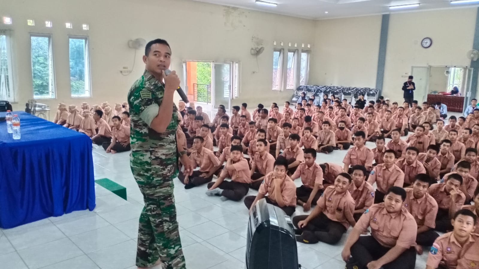 ” Generasi muda harus mempunyai rasa ikut memiliki NKRI, menolak dan memberantas penyebaran ajaran atau paham yang bertentangan dengan Pancasila, membangun persaudaraan dan kerukunan sesuai semboyan negara yaitu bhinneka tunggal ika,” kata Serda Slamet Priyono.