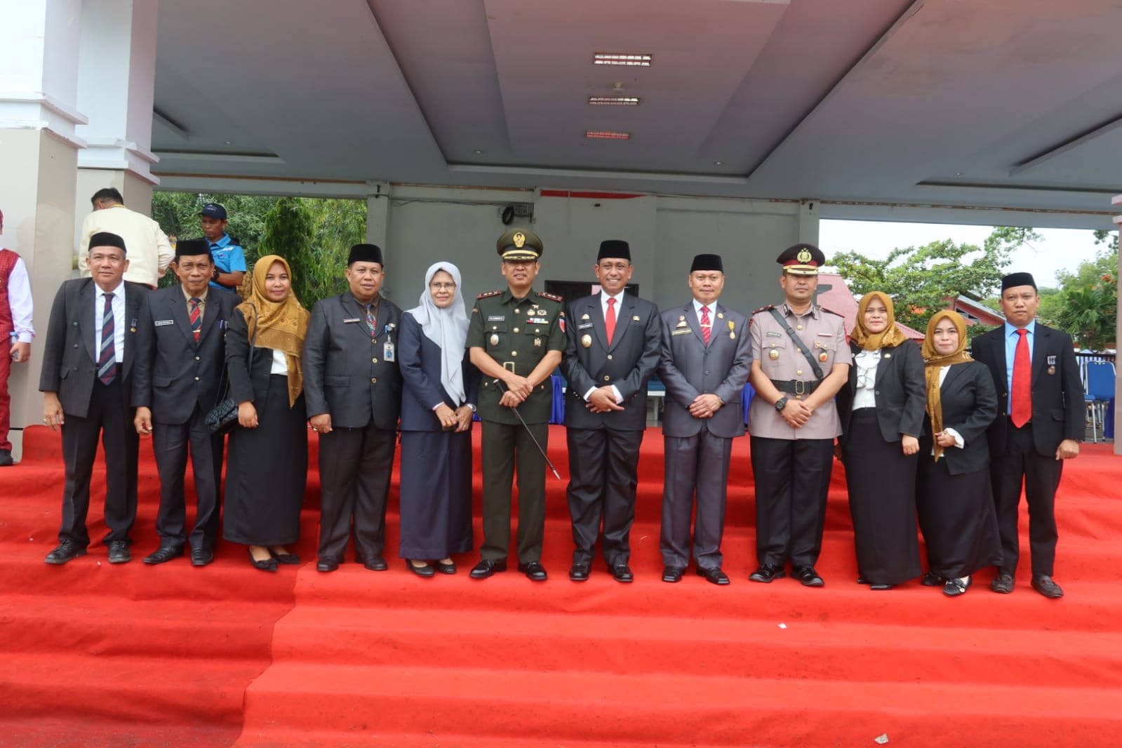 Lalu, Pimpinan Perguruan Tinggi, Pimpinan Perusahaan/BUMN/BUMD, Kepala SMA, SMK, MA, SMP, MTs, SD, TK, PAUD atau Sederajat, Tokoh Agama, Tokoh Pendidik, Pimpinan Organisasi serta undangan lainnya. Sementara peserta upacara dari Guru dan pelajar SMA, SMK, MA, SMP, MTs, SD, atau Sederajat serta peserta lainnya.