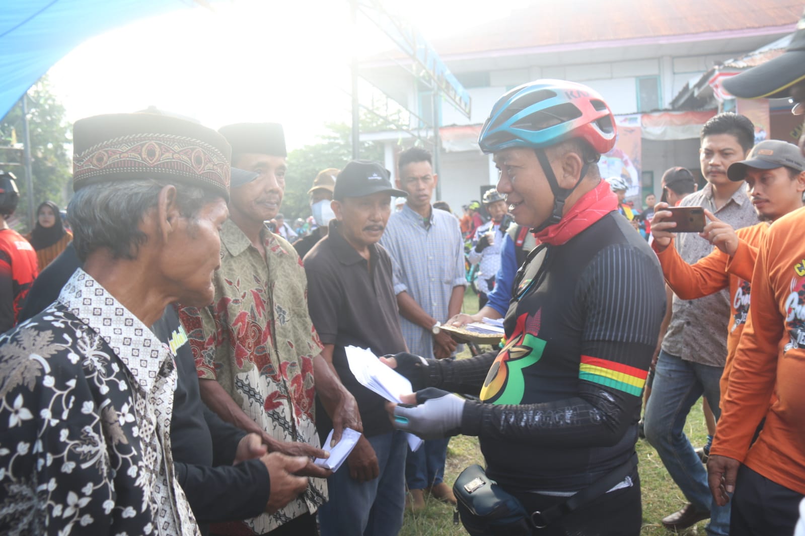 Penyerahan bantuan diserahkan ditengah kegiatan _Campalagian MTB Cross Country_, bantuan diserahkan secara simbolis kepada perwakilan korban tiap desa se-Kecamatan Campalagian.